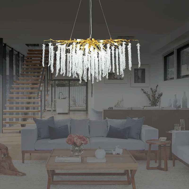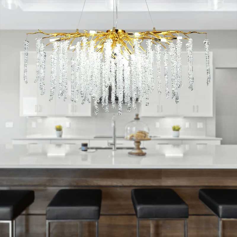 Claire White Rectangle Crystal Pendant Light is a nature inspired Luxury chandelier that will add elegance and glamour to your home and would look perfect hanging above a dining table